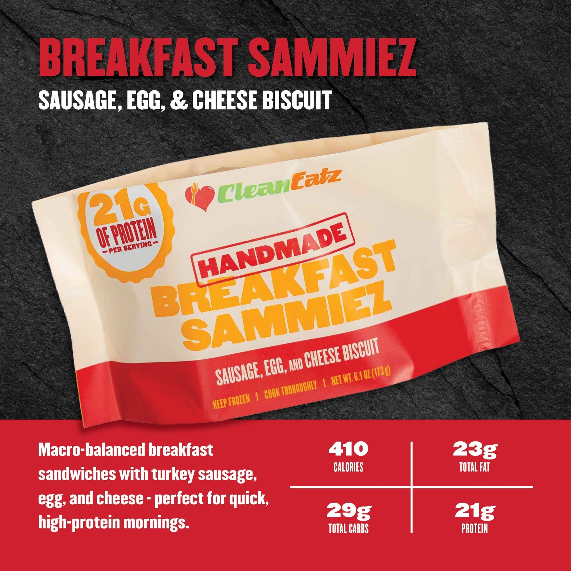 150 reviewsClean Eatz Breakfast Sammiez – High-Protein, Ready in 90 Seconds
